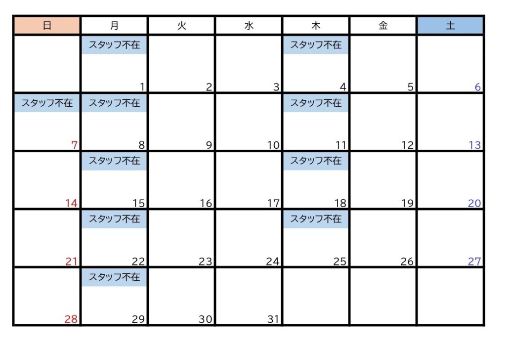 3階「J.PRESS」は諸事情により当面の間、毎週月・木曜日はスタッフ不在のため休業させていただきます。今月の休業日は下記のスタッフカレンダーをご参照ください。