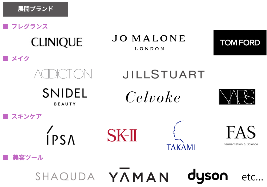 人気ブランドのコスメ・フレグランスを、実際に見て、触って、お試しいただけます。