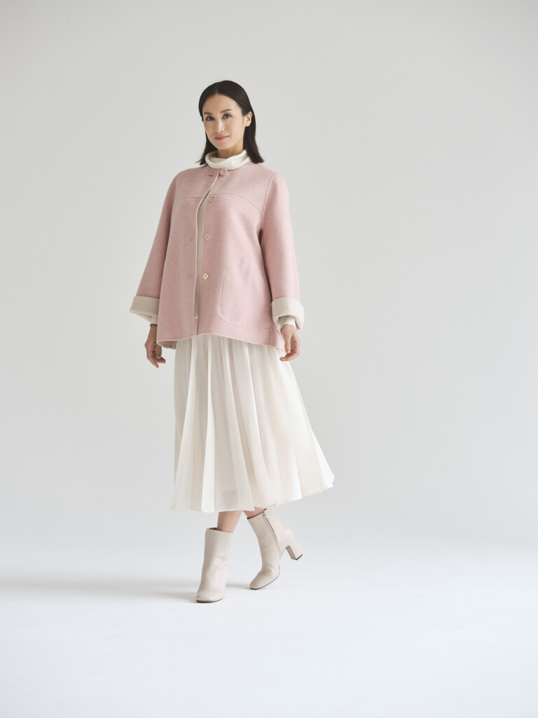 イタリアMANTECO(マンテコ)社製の生地を一重で軽く仕上げたリバーシブルコート。環境に配慮したリサイクルウールと植物由来のセルロースを混紡した、温かく柔らかな起毛感のリバー素材となっております。