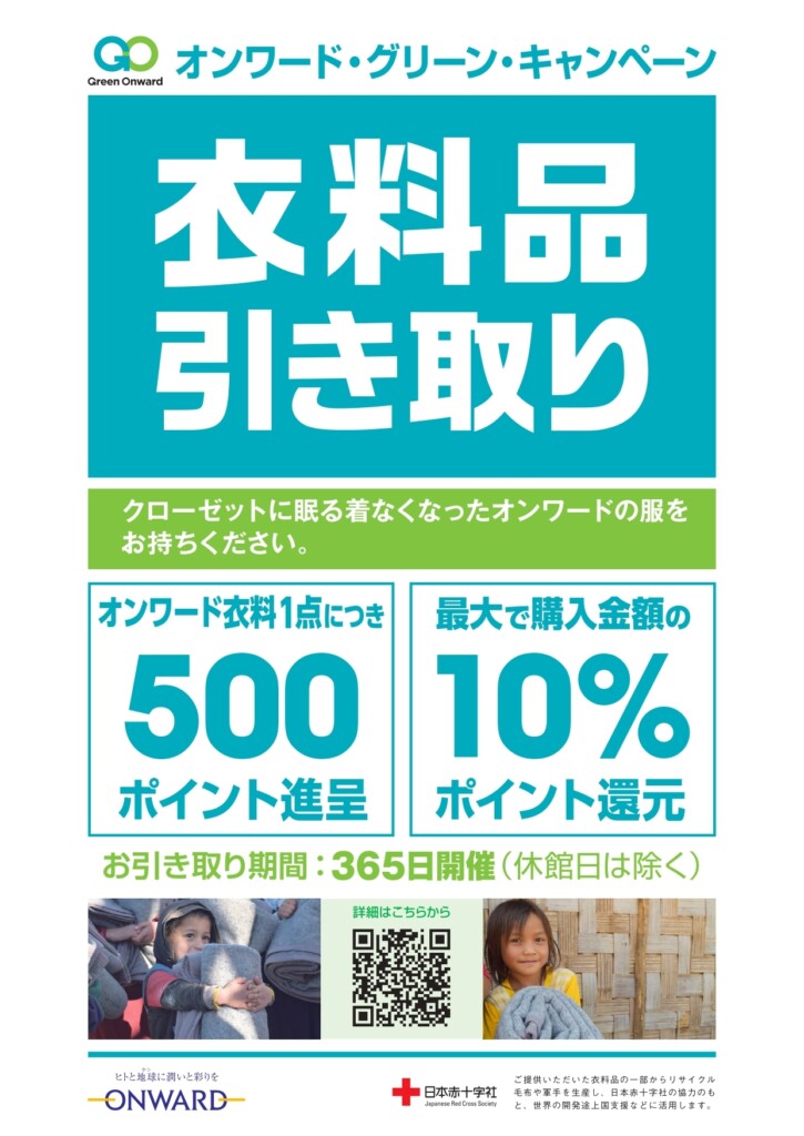 【ポイントご利用方法】衣料品をお持ち込みいただいた館内の「オンワード・クリック&トライ」導入店舗に限ります。