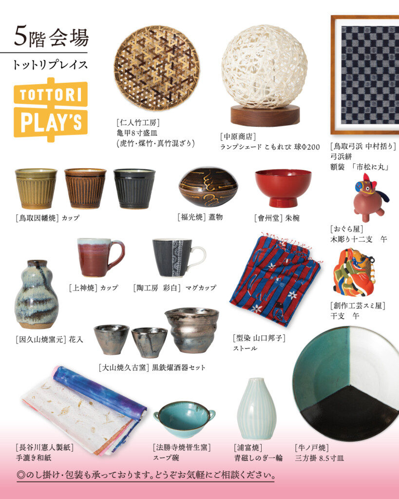因州和紙・陶磁器・竹製品・郷土玩具など、伝統に触れ、くらしの中で愛着が生まれる作品の数々をお楽しみください。