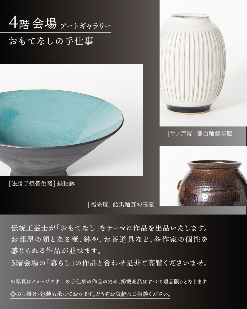 また、4階アートギャラリーでは、伝統工芸士が「おもてなし」をテーマに出品。