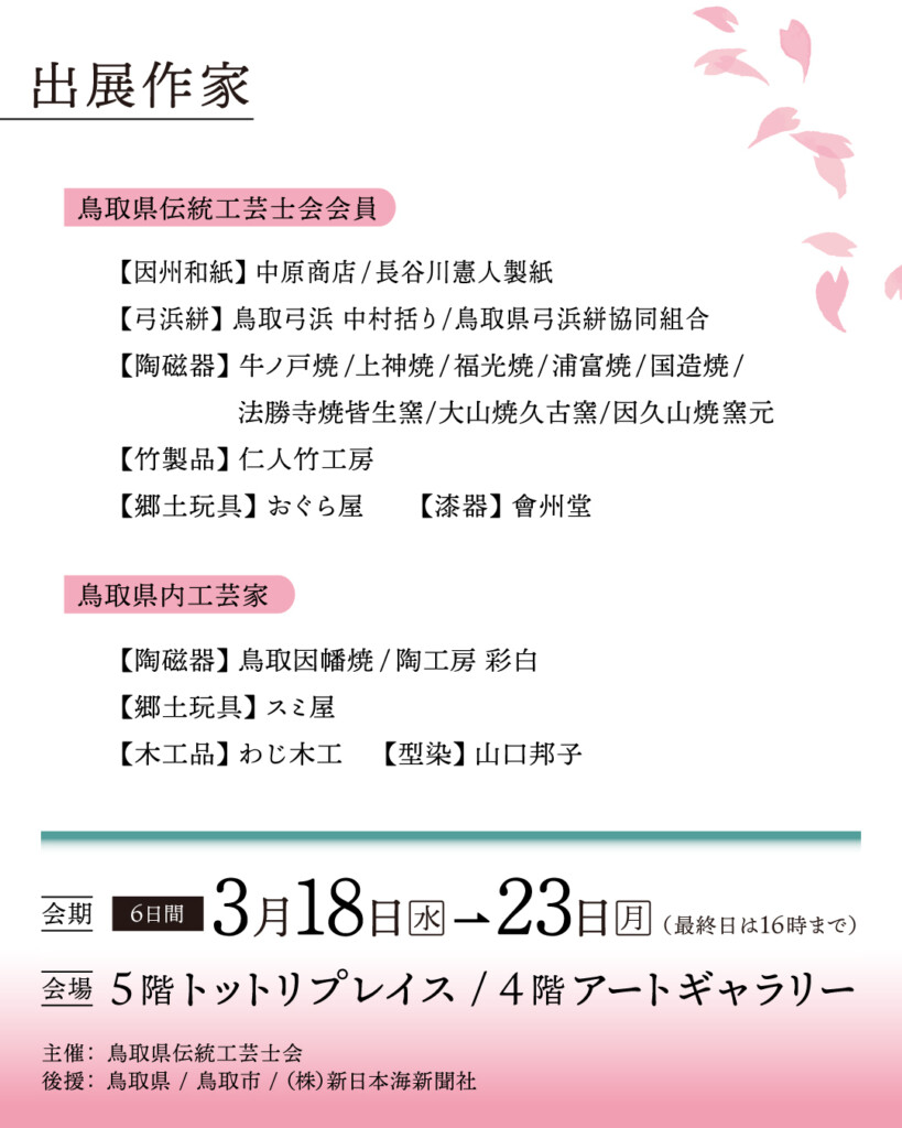 鳥取県伝統工芸士の作品が一堂に集まる「鳥取の伝統工芸士展」を今年も開催いたします。